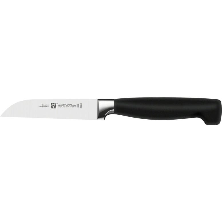 Het rechte snijvlak maakt van groentemessen het optimale gereedschap voor het schoonmaken en snijden van groenten en fruit. ****Four Star® werd 30 jaar geleden door Zwilling J.A. Henckels ontwikkeld. Deze serie van gesmede messen biedt veiligheid, ergonomie en comfort en is tot op vandaag wereldwijd de meest verkochte messenserie van Zwilling.