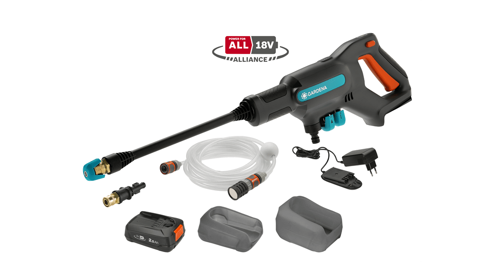Ontdek de krachtige, veelzijdige en mobiele hogedrukreiniging met de AquaClean 24/18V P4A kant-en-klare set van GARDENA, speciaal ontworpen voor jou en alle andere trotse en gepassioneerde huis- en tuinbezitters. Deze compacte, snoerloze medium drukreiniger wordt geleverd met diverse accessoires, zodat je direct aan de slag kunt met al je schoonmaakklussen.
