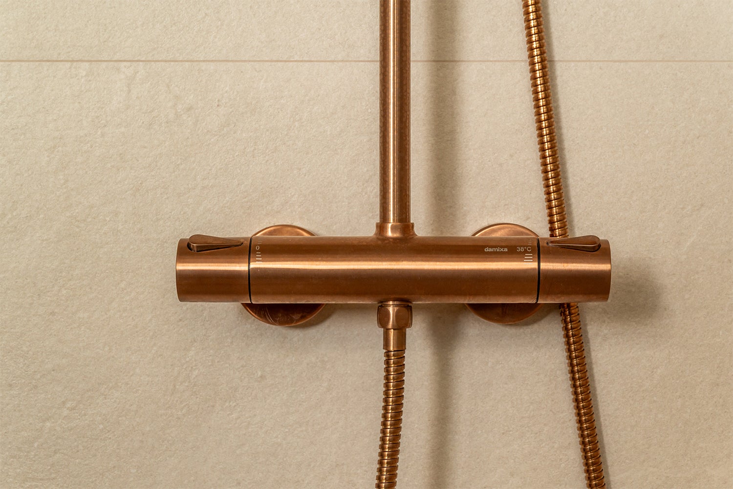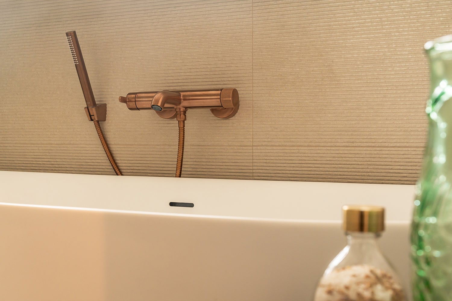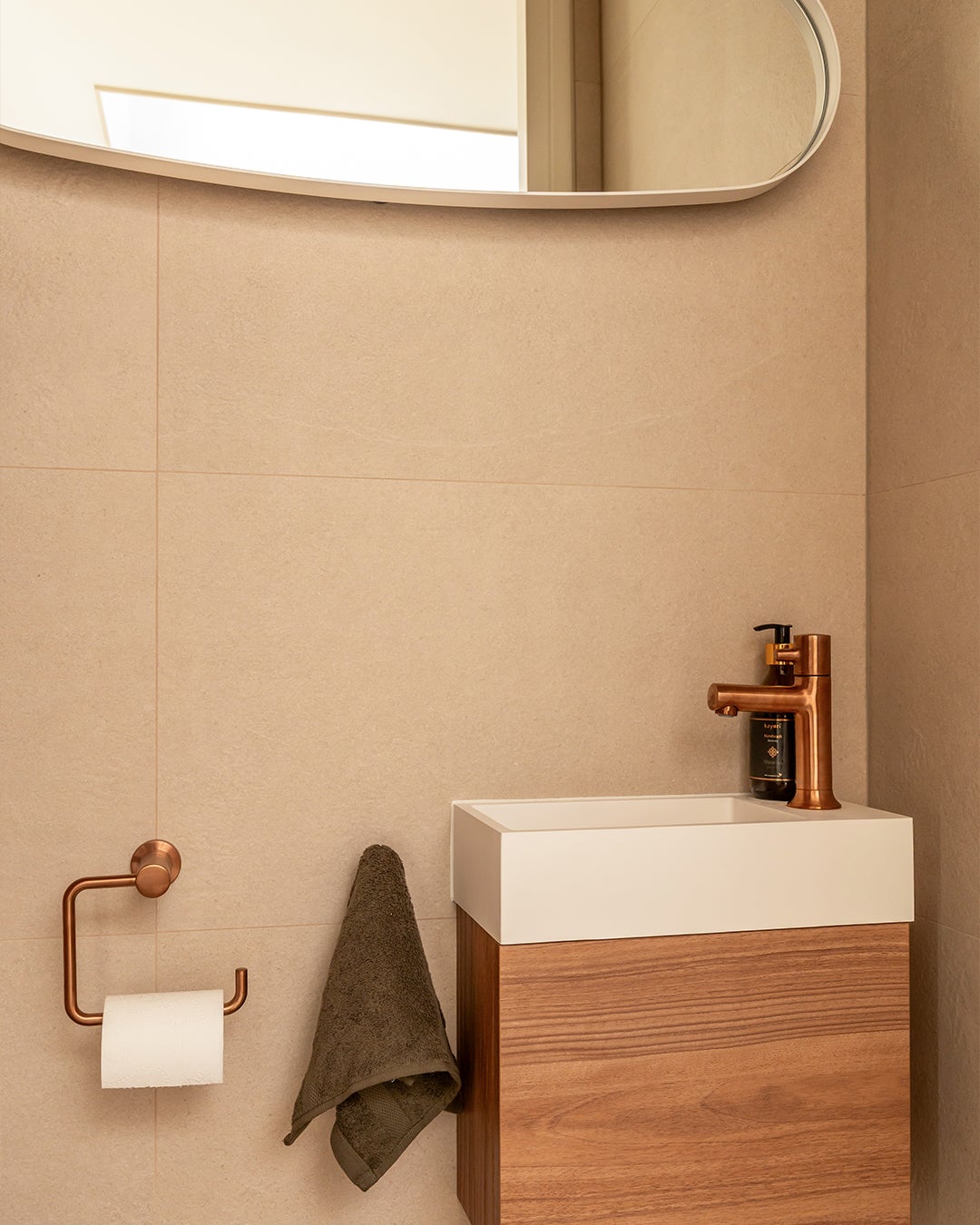 Het eindresultaat is prachtig: een rustige, harmonieuze sfeer met mooie koperen kranen die voor een warme uitstraling zorgen. We zijn ontzettend tevreden en genieten elke dag van onze nieuwe badkamers. We hopen hier nog jarenlang met veel plezier te badderen."