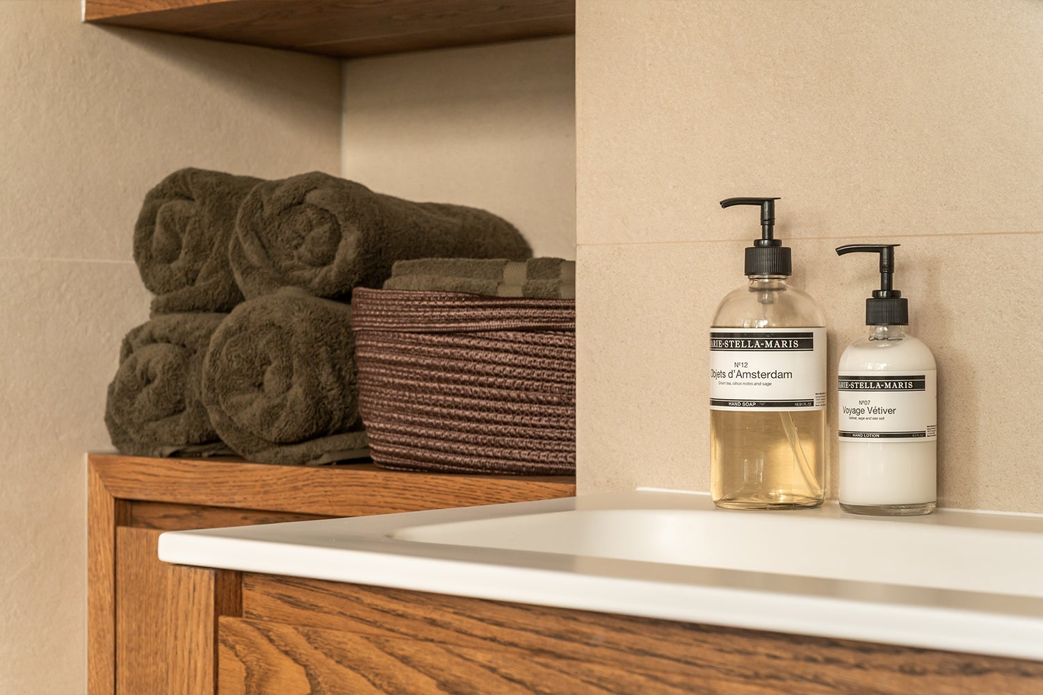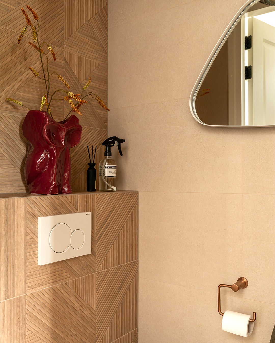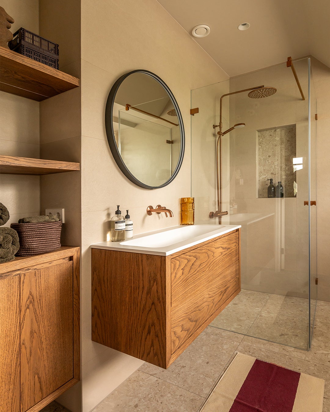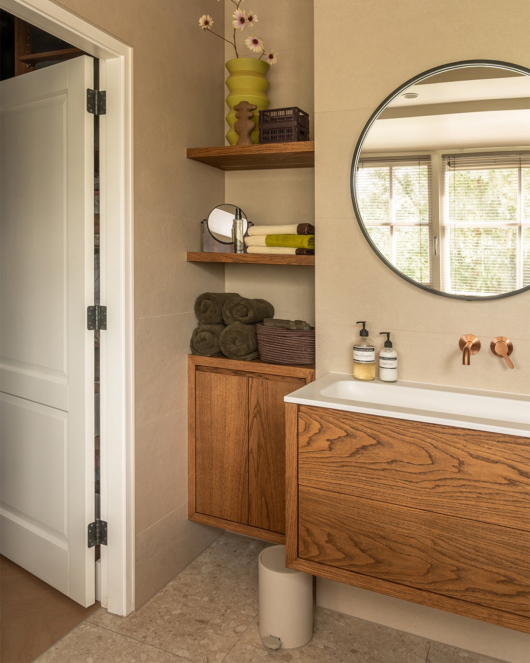 Het eindresultaat is prachtig: een rustige, harmonieuze sfeer met mooie koperen kranen die voor een warme uitstraling zorgen. We zijn ontzettend tevreden en genieten elke dag van onze nieuwe badkamers. We hopen hier nog jarenlang met veel plezier te badderen."