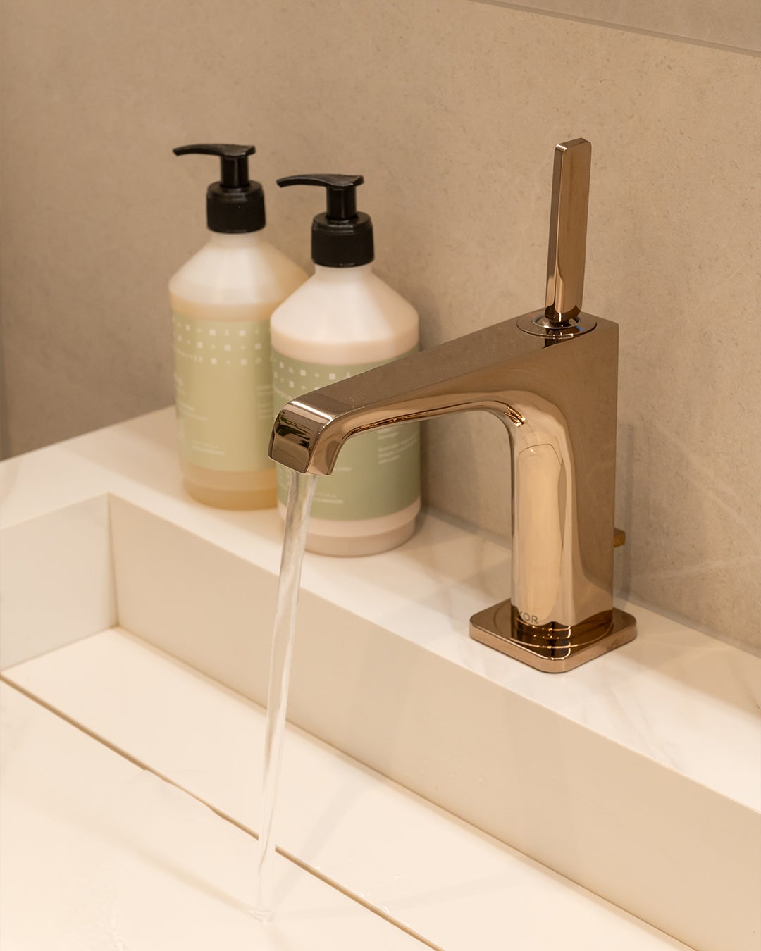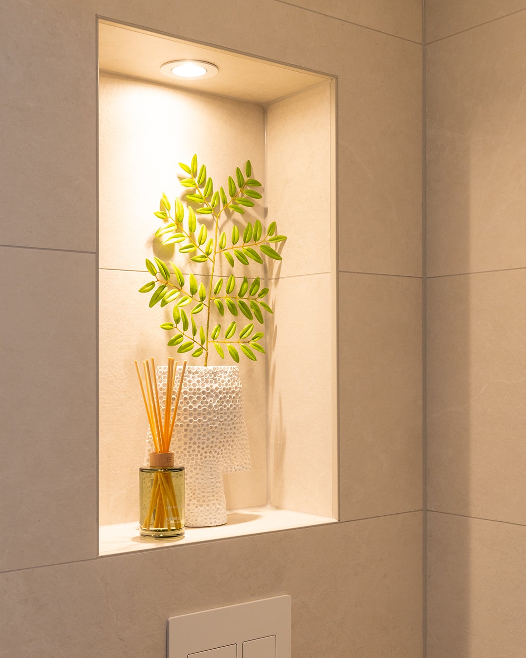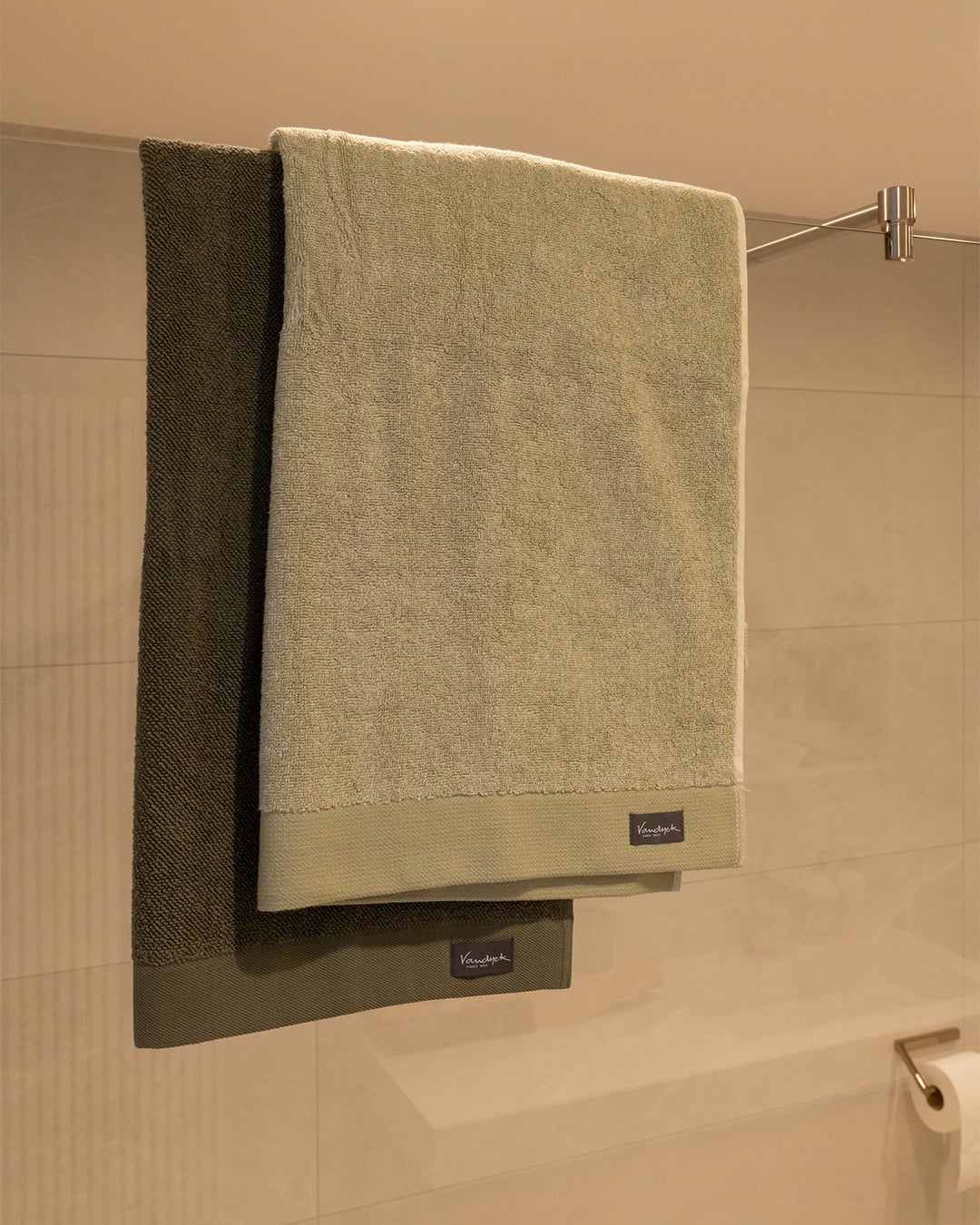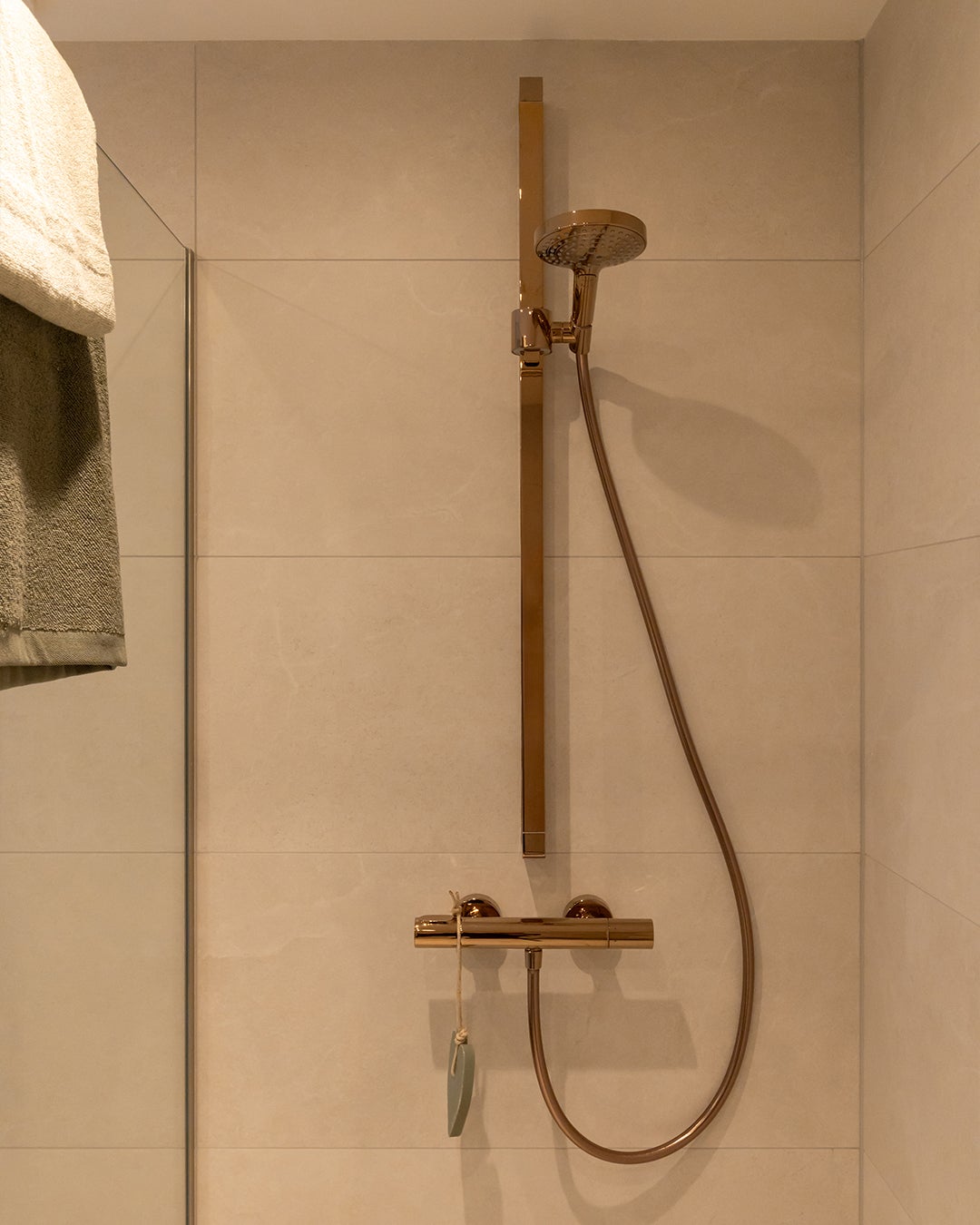 Stap binnen in een oase van warmte, sfeer, rust en comfort. De grote tegels op de wand in een zandkleurige uitstraling zorgen voor die rust en warmte. Combineer dit met een meubel in een chique sfeervolle houtlook met sprekende koperen kranen en je maakt het plaatje helemaal compleet.
