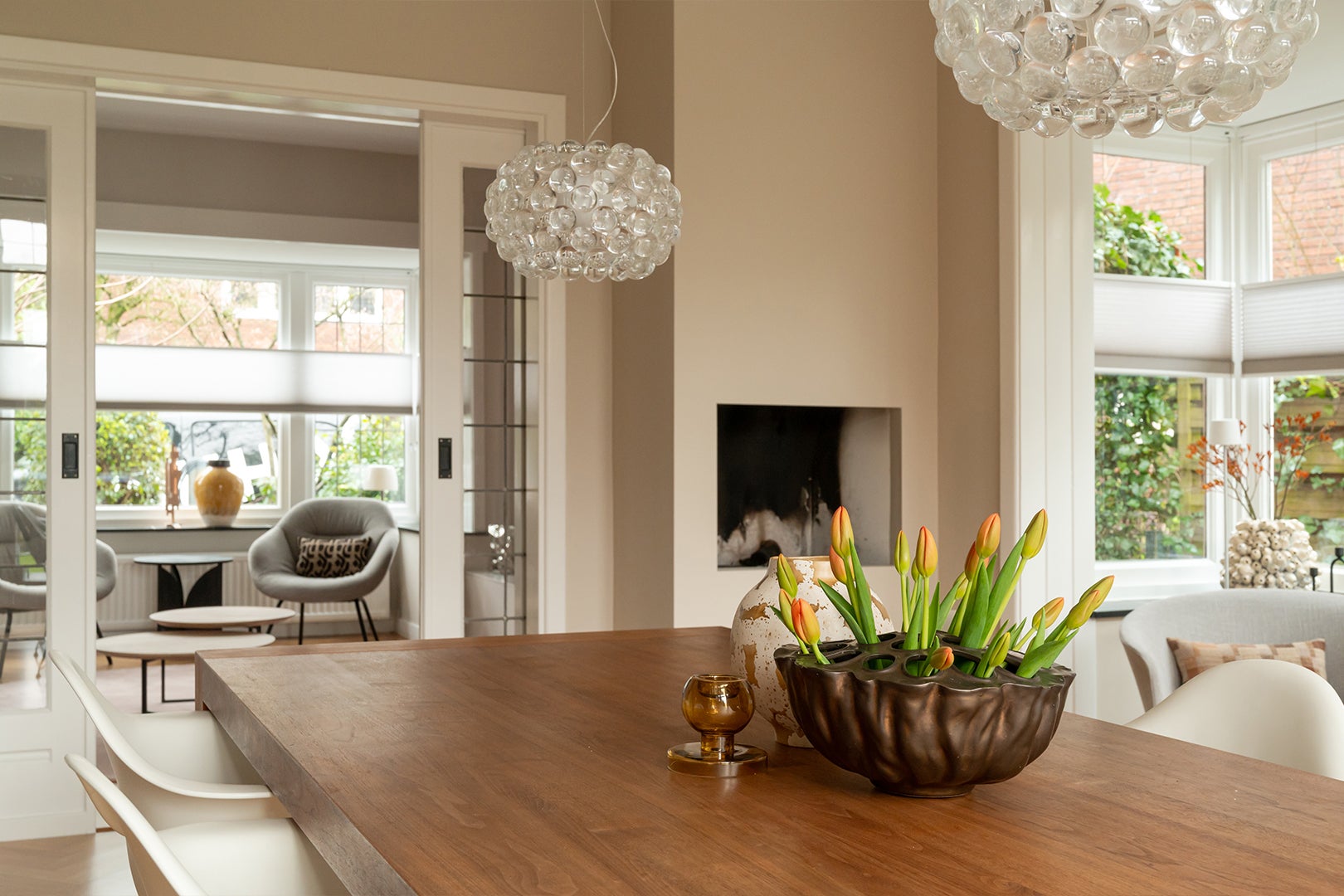 Onze woonwens was: meer eenheid tussen de voor- en achterkamer, warme en rustige kleuren voor de muren, gordijnen en meubels. Maar wat te kiezen? Wij kwamen er niet uit en besloten contact te zoeken met de woon- en leefstijlstudio van Nijhof. De stylist heeft goed geluisterd naar onze wensen en vroeg goed door. Wat erg hielp was het rondje over de meubel- en keukenafdeling. Zo konden wij aangeven welke meubels, kleuren etc. wij wel of niet mooi vonden. Dat maakte het voor ons ook veel concreter.