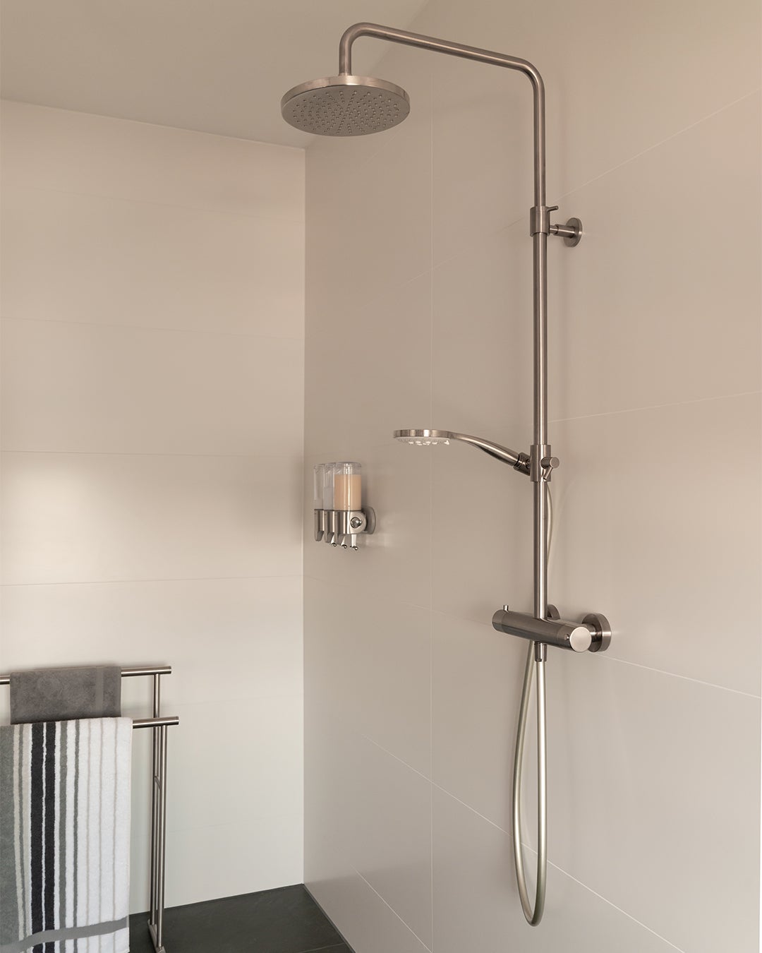 "Ik ben al jaren klant bij Woonwarenhuis Nijhof in Baarn. In het voorjaar van 2021 kocht ik een appartement dat geheel gestript moest worden. Binnen Nijhof zit een speciale afdeling voor onder andere styling en advies. Daar was een styliste aanwezig, waaraan ik al mijn wensen en plannen kenbaar maakte. Astrid wist daar wel raad mee. Zij bracht mij in contact met projectleider David van Kampen en een goede aannemer Martho van Lith die veel badkamers voor Nijhof installeert. Deze drie mensen hebben mijn appartement tot een walhalla gemaakt, werkelijk top.