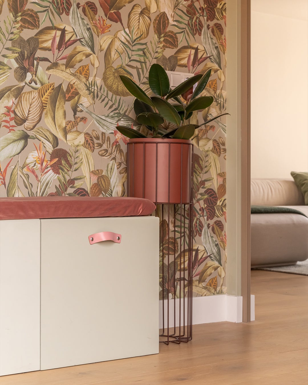 Belangrijk vonden ze eenheid in het hele huis. Evenals functionaliteit, zoals het kunnen opruimen van speelgoed, tasjes en schoentjes in de hal.