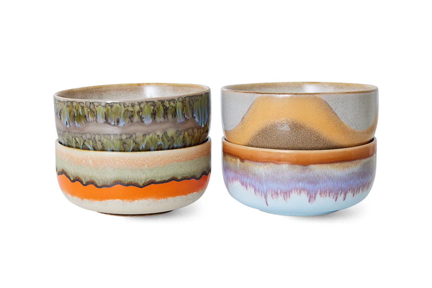 Het 70’s servies van HKliving is ideaal om de boel eens flink op te fleuren. De bonte kleuren en dessins zijn optimistisch en maken een vette knipoog naar de iconische jaren ’70 van de vorige eeuw. ook leuk om te combineren met wat saaier servies. Vrijheid blijheid dus, want elke combinatie is goed.