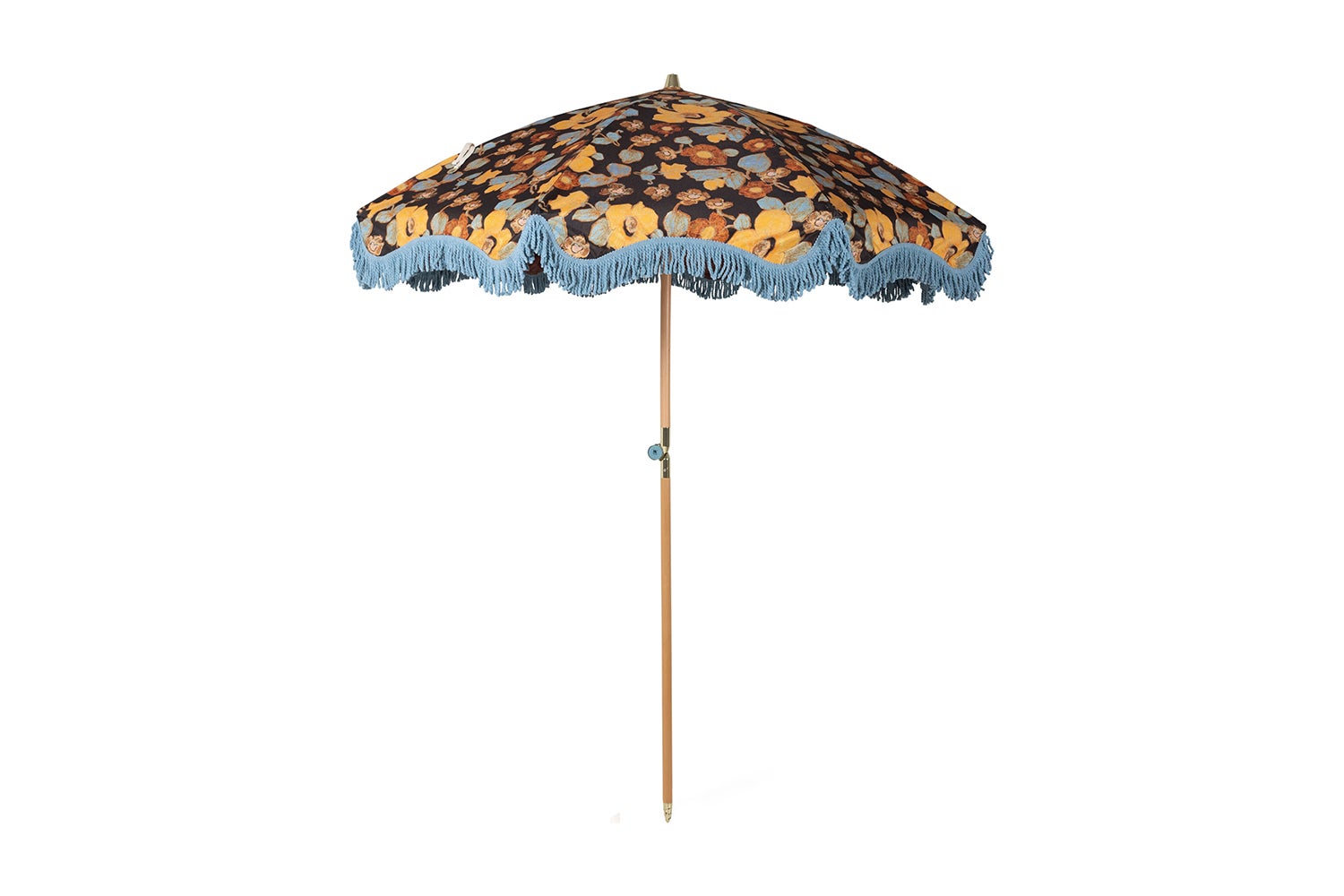Ben je net als ik dol op kleur? Den ben je bij HKliving aan het goede adres. Evenals het servies is het dessin van deze parasol ook geïnspireerd door de flower power periode van de seventies. En dat is duidelijk te zien. Met dit opvallende en uitgesproken dessin maak je een vrolijk statement in je tuin. Zo’n statement mag in mijn ogen niet ontbreken bij een zomerse barbecue.