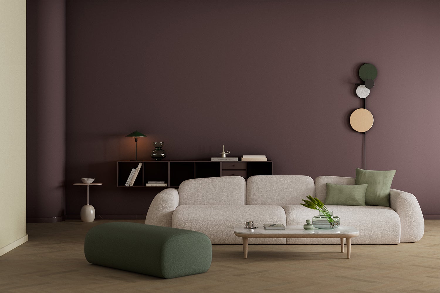 Dit inspiratiepalet toont de samenwerking tussen verschillende aardse kleuren. Dankzij deze aardse tinten is het palet rustgevend, maar valt het ook op in onderscheidenheid. En waar dit palet in de basis sereniteit uitstraalt, geeft de kleur van het jaar een fascinerende finish. Mocht je er nog naar op zoek zijn: dit is hét bewijs dat aubergine-paars zo prachtig kleurt bij groentinten.