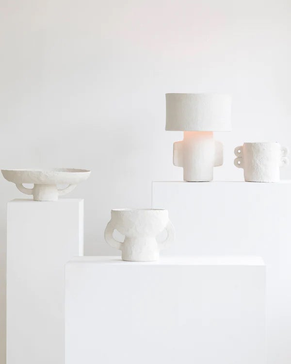 Marie Michielssen's passie voor papier en prints, gecombineerd met haar focus op hergebruik, heeft haar naar een reeks opvallende papier-maché ontwerpen geleid. Door te experimenteren met vormen, bereikt ze een adembenemend visueel effect dat haar ontwerpen een uniek karakter geeft.