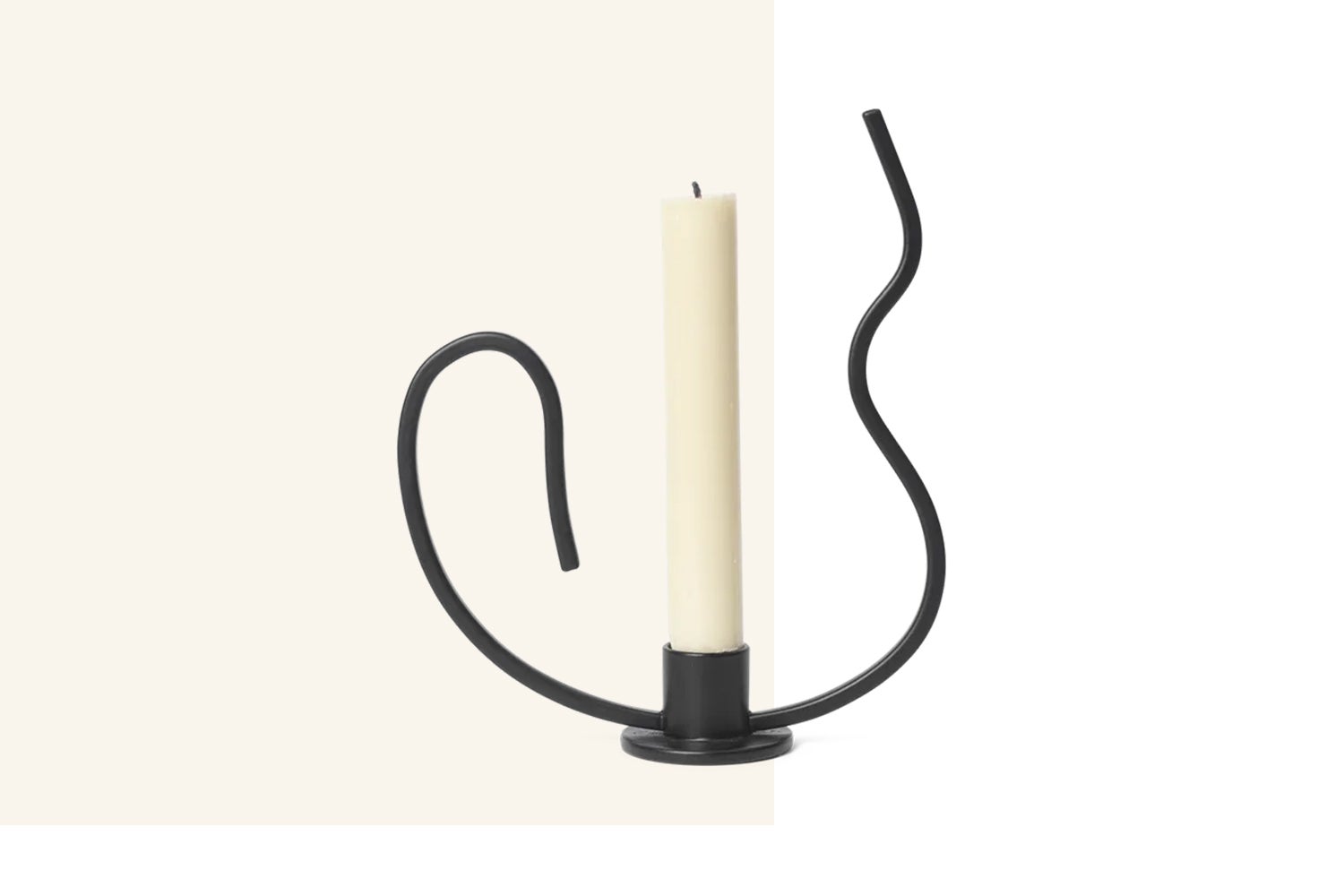 Een kaarsenstandaard met een sierlijke, golvende vorm. Geïnspireerd door de elegante bewegingen van de Walsdans. Totdat die beweging plotseling bevroren wordt. Kandelaar Valse van ferm LIVING is gemaakt van zwart gepoedercoat ijzer en is 28cm hoog.