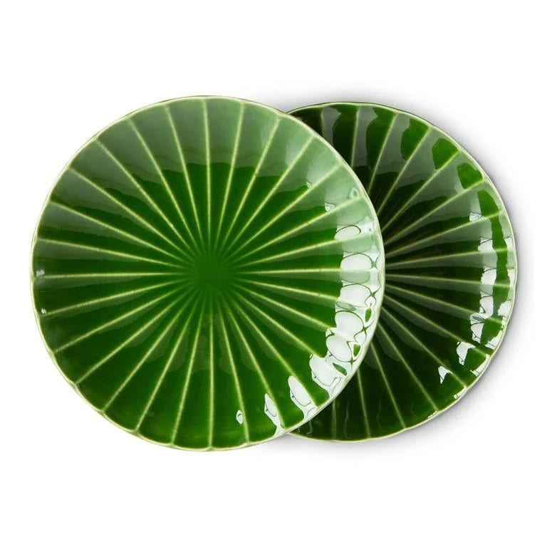 Kleed je tafel stijlvol aan met de The Emeralds serie van HKliving. Het Mediterraanse design brengt textuur en een natuurlijk effect samen. Het is gemaakt van glas en glanzend keramiek met reactief glazuur, wat elk stuk uniek maakt. Mooi!