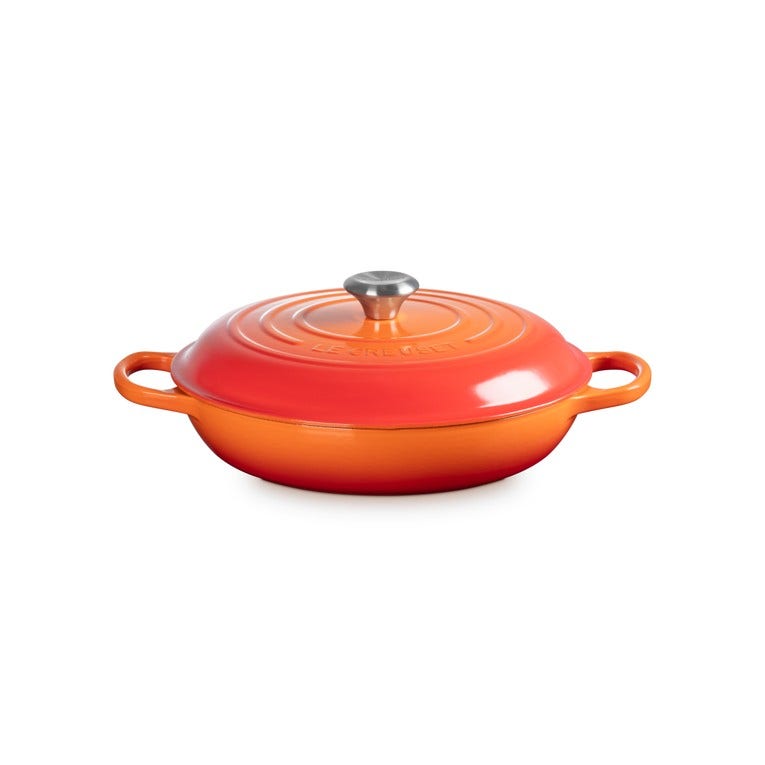 Met de geëmailleerde gietijzeren braadpan bracht Le Creuset zo’n 100 jaar geleden kleur in de keuken en werd een designicoon gecreëerd. De braadpannen zijn stuk voor stuk gemaakt van ingrediënten van de hoogste kwaliteit, waaronder 85% gerecycled ijzer en staal. Deze grondstoffen worden in de oven gesmolten en vervolgens in een smeltkroes of 'creuset' gegoten. Resultaat is de Le Creuset braadpan; kookgerei waar vele generaties al van genoten hebben. Want een Le Creuset van vandaag is het erfstuk van morgen.