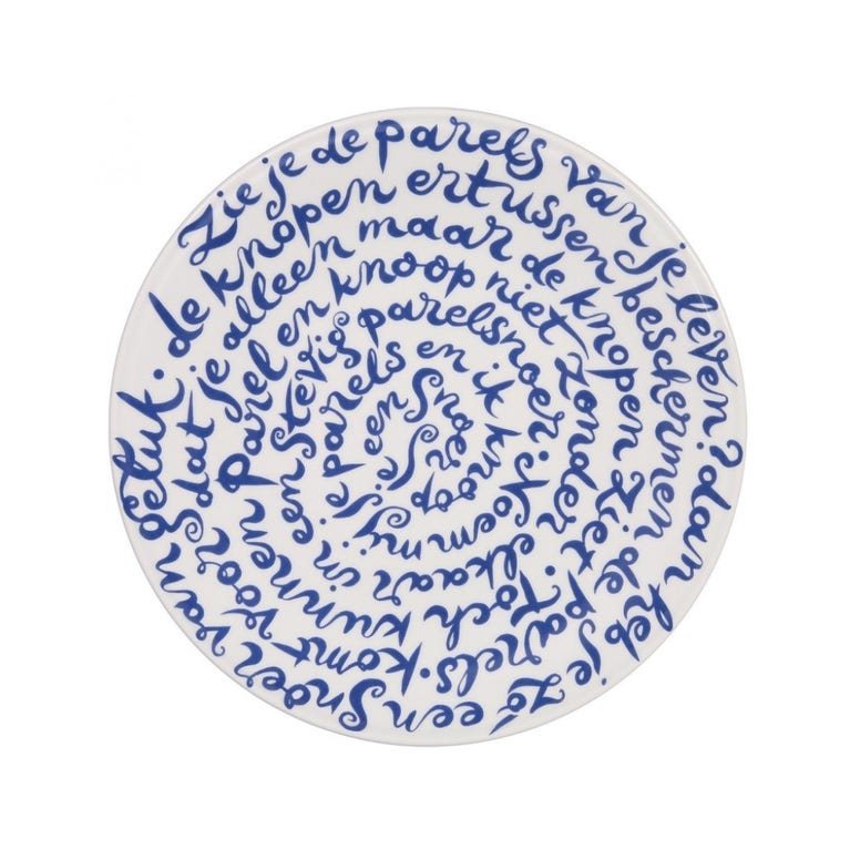 Ontdek de Royal Delft Diskus! serie, een unieke collectie porseleinen borden die zijn ontworpen om niet alleen visueel aantrekkelijk te zijn, maar ook om gesprekken op gang te brengen. Elk bord is versierd met een zorgvuldig gekalligrafeerde uitspraak die uitnodigt tot reflectie en discussie over een breed scala aan onderwerpen. Dit maakt ze perfect voor etentjes waar je gasten niet alleen over werk, politiek of de kinderen praten, maar ook over thema's zoals liefde, kansen en vriendschap.