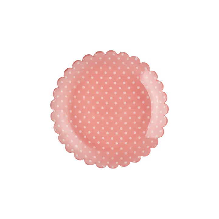 Acryl taartbord met koraalkleurige stippen – speels, sterk en perfect voor elke gelegenheid