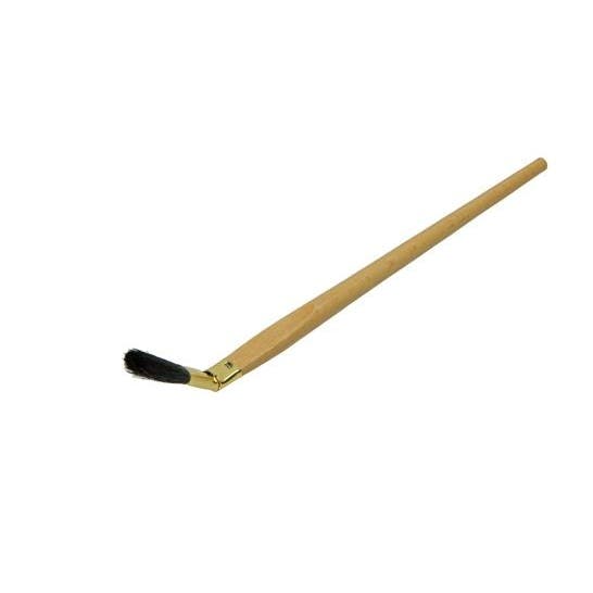 Gebogen Lyons Penseel zwart: heeft zwart varkenshaar en een geverniste houten steel. M.n. geschikt voor verven op alkydbasis. Dit penseel is uitermate handig om af te lijnen/besnijden en aanpassingen in de kleine hoekjes / randjes die met een gewone kwast niet bereikt kunnen worden.