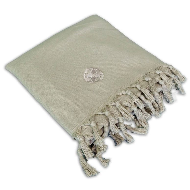 Deze Hammamdoek is gemaakt van zacht katoen en heeft franjes aan de uiteindes. Het Kayori logo is op het doek geborduurd als mooi detail!