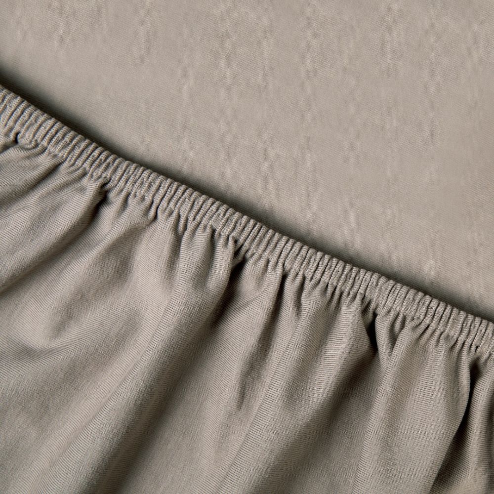 Het hoeslaken is gemaakt van hoogwaardige, ademende jerseystof met een vleugje lycra, wat zorgt voor een comfortabele stretch en een perfecte pasvorm. Dankzij het elastiek rondom blijft het hoeslaken strak en stevig op zijn plek zitten, zelfs bij veel beweging tijdens de nacht. De stof voelt soepel en zacht aan, wat bijdraagt aan een prettig slaapklimaat.