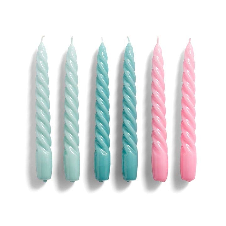 Kaarsen Spiral - 6 stuks - arctisch blauw/groenblauw/roze