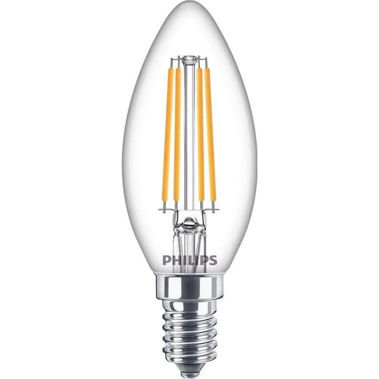 Vervang je oude kaarslamp met een nieuwe energiezuinige Philips LED-lamp, met warmwit licht. Deze lamp verbruikt circa 80% minder energie dan traditionele lampen dankzij de nieuwste energiezuinige LED-technologie en ze gaan tien keer langer mee. Met EyeComfort, voor licht dat aangenaam is voor jouw ogen. Deze lamp heeft een E14-fitting en is vaak geschikt voor tafellampen of lusters.LED-lamp van hoge kwaliteit die tientallen jaren meegaat