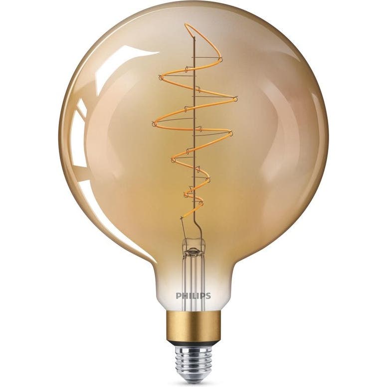 Met deze Philips LED filamentlamp zorg je voor extra sfeer in huis. Ze zorgen voor een stijlvol lichtelement en geven sfeervol warmwit licht. Deze lamp heeft een gouden coating en in de lamp zie je een dimbare lichtspiraal, wat doet denken aan gloeilampen van vroeger. Met EyeComfort, voor licht dat aangenaam is voor jouw ogen. De lamp heeft een E27-fitting, en past dus in de meeste lampen met grote fitting.Kies voor licht van hoge kwaliteit