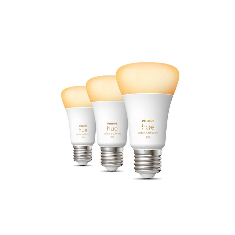 Haal extra sfeer in huis met deze drie Philips Hue White ambiance standaardlampen. De slimme LED-lampen met E27-fitting geven precies het juiste licht dat je nodig hebt. Stel warmwit licht in als je wil ontspannen, koelwit licht als je meer focus nodig hebt of dim het licht voor een gezellige avond. De lamp heeft 800 lumen, wat gelijk is aan een gloeilamp van 60 W. Met de Bluetooth-functie en de bijbehorende app bedien je tot wel 10 lampen en stel je in een handomdraai alle lampen in op feller licht of een andere wittint. Wil je toegang tot alle slimme functies, zoals timers, automatiseringen of bediening van je verlichting als je niet thuis bent, breid je verlichting dan uit met een Hue Bridge.Bedien tot wel 10 lampen direct via Bluetooth