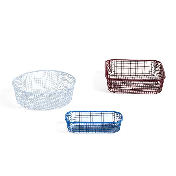 De Trinkets manden van Hay zijn gepoedercoate ijzeren manden in drie verschillende kleuren en vormen. Ze zijn verkrijgbaar in verschillende uitvoeringen en kunnen worden gebruikt voor het bewaren van voedsel en fruit, maar ook van alle kantoorbenodigdheden en cosmetica of voor decoratieve doeleinden. De Trinkets manden scheppen orde in elke woonruimte en passen bij elke inrichtingsstijl. Het open draadontwerp zorgt voor een duidelijk overzicht van de inhoud van de manden, zodat niets verloren gaat.