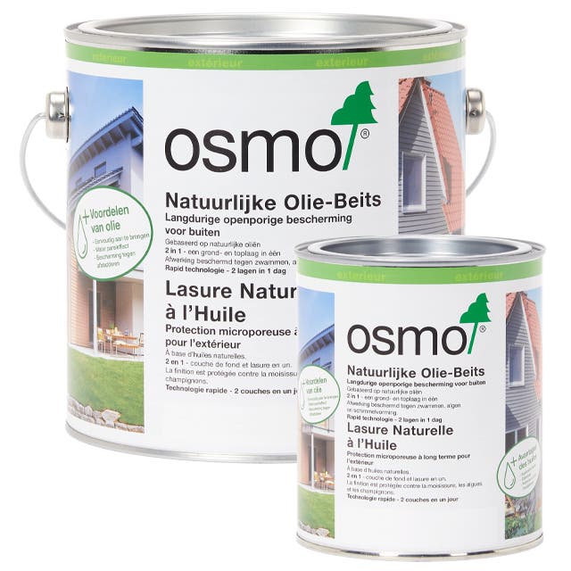 Doordat de Osmo Natuurlijke Olie-Beits zowel als grond en als afwerklaag gebruikt wordt is het zeer gebruiksvriendelijk en heb je aan één product voldoende voor een volledige behandeling. Er hoeven dus niet meerdere producten aangeschaft te worden. De Natuurlijke Olie Beitsen met een kleurpigment bieden een bescherming tegen Uv-straling van de zon, de kleurloze variant (701, Mat) doet dit niet. Wanneer hout niet beschermd wordt tegen Uv-stralen wordt het hout grijs. Om deze grijze kleur van het hout te verwijderen kunt u de Power-Gel (houtontgrijzer) gebruiken.