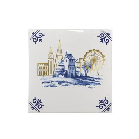 Royal Delft Goldie Tegels - Delftsblauwe tegels met een gouden twist - van Delft naar Londen. Goldie Tegels zijn de charmante Delftsblauwe tegels die een speelse hint van goud bevatten. Royal Delft en Delftsblauwe tegels zijn al eeuwenlang met elkaar verweven. De ontwerpers van Royal Delft hebben de klassieke Delftsblauwe tegels genomen en met een vleugje humor vertaald naar de moderne tijd. Elke tegel heeft zijn eigen unieke verhaal. Wij zijn benieuwd naar jouw verhaal!