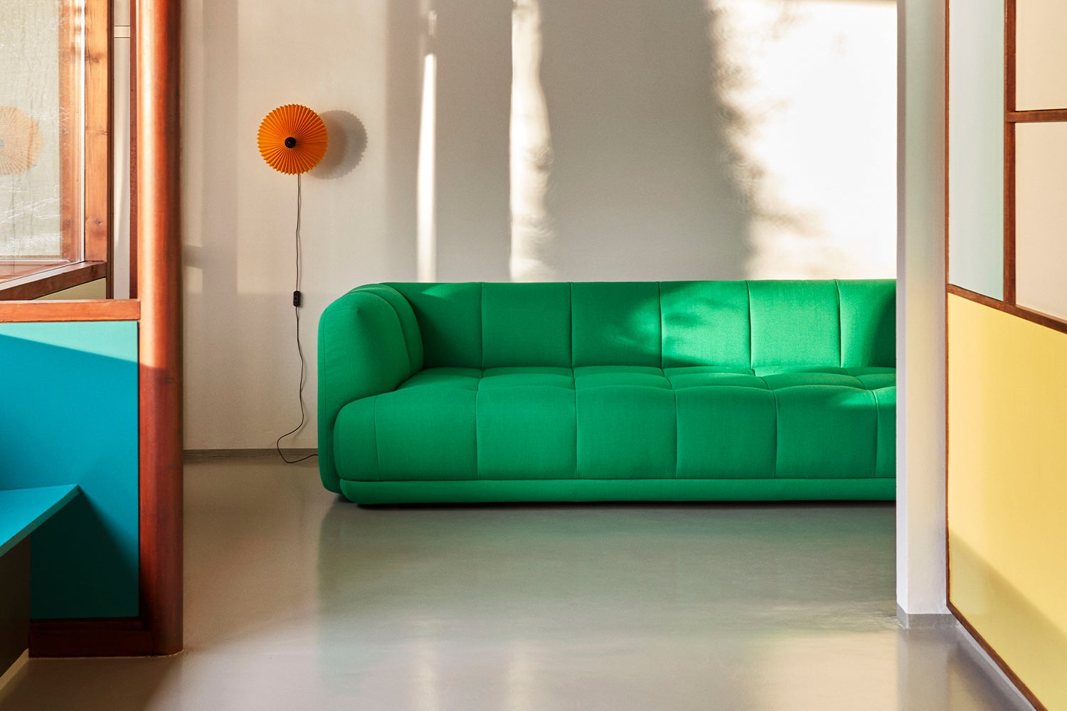 Het ontwerp van de Quilton bank is minimalistisch en warm. Met grote zachte kussens die uitnodigen om te ontspannen. Het frame is slank en de lijnen zijn helder, wat zorgt voor een verfijnde en moderne uitstraling zonder karakter te verliezen. De combinatie van rechte en ronde vormen maakt de Quilton zowel comfortabel als visueel aantrekkelijk, ideaal dus voor grote én kleinere interieurs.