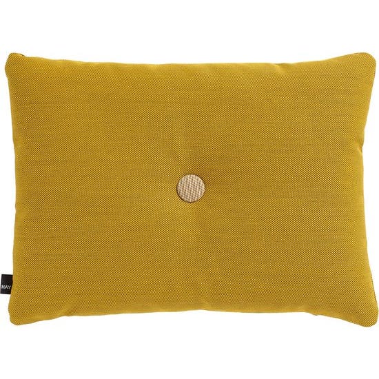 De collectie Dot kussens van HAY wordt gekenmerkt door de Dot knoop in het midden van het kussen- De stoffen die voor deze kussencollectie gebruikt worden zijn meubelstoffen