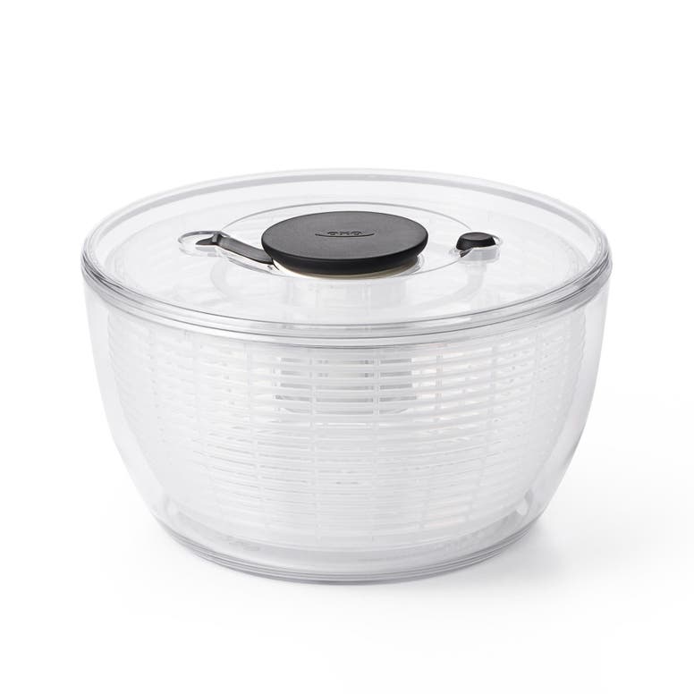Een lekkere frisse salade maken wordt een feest met de OXO Good Grips Slacentrifuge. Met deze slacentrifuge heb je de gewassen sla in een handomdraai droog. Door het ontwerp is de centrifuge compact op te bergen en door de mooie vormgeving kan de heldere schaal direct na gebruik als serverschaal worden gebruikt.