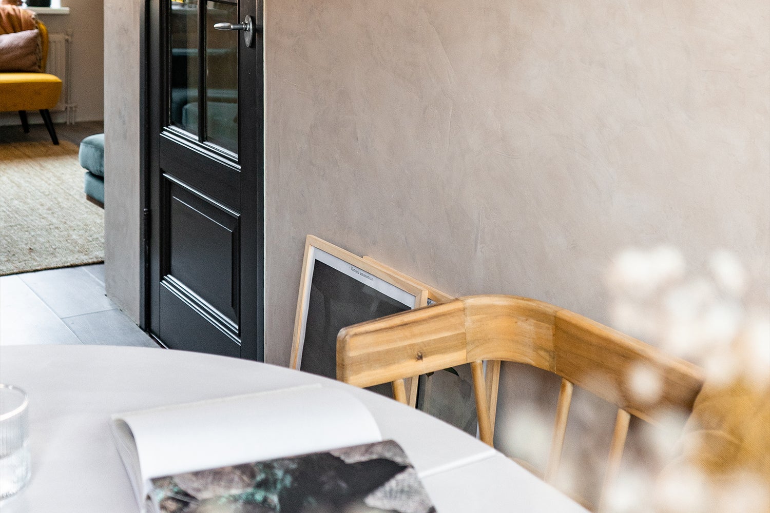Het is belangrijk om een neutrale basis te hebben. Maar je wil natuurlijk ook wat spanning op de muur, want ook daar mag wel wat gebeuren. Een stoere betonlook is misschien de oplossing. En nee, dat hoeft zeker niet grijs te zijn. Met de ecologische Marrakech Walls verf van Pure & Original heb je keuze uit 175 verschillende kleuren! Het is bovendien gemakkelijk zelf aan te brengen met de speciale spatel. Doe dit heel grof voor stoere en robuuste look, of juist subtiel en glad voor tadelakt uitstraling