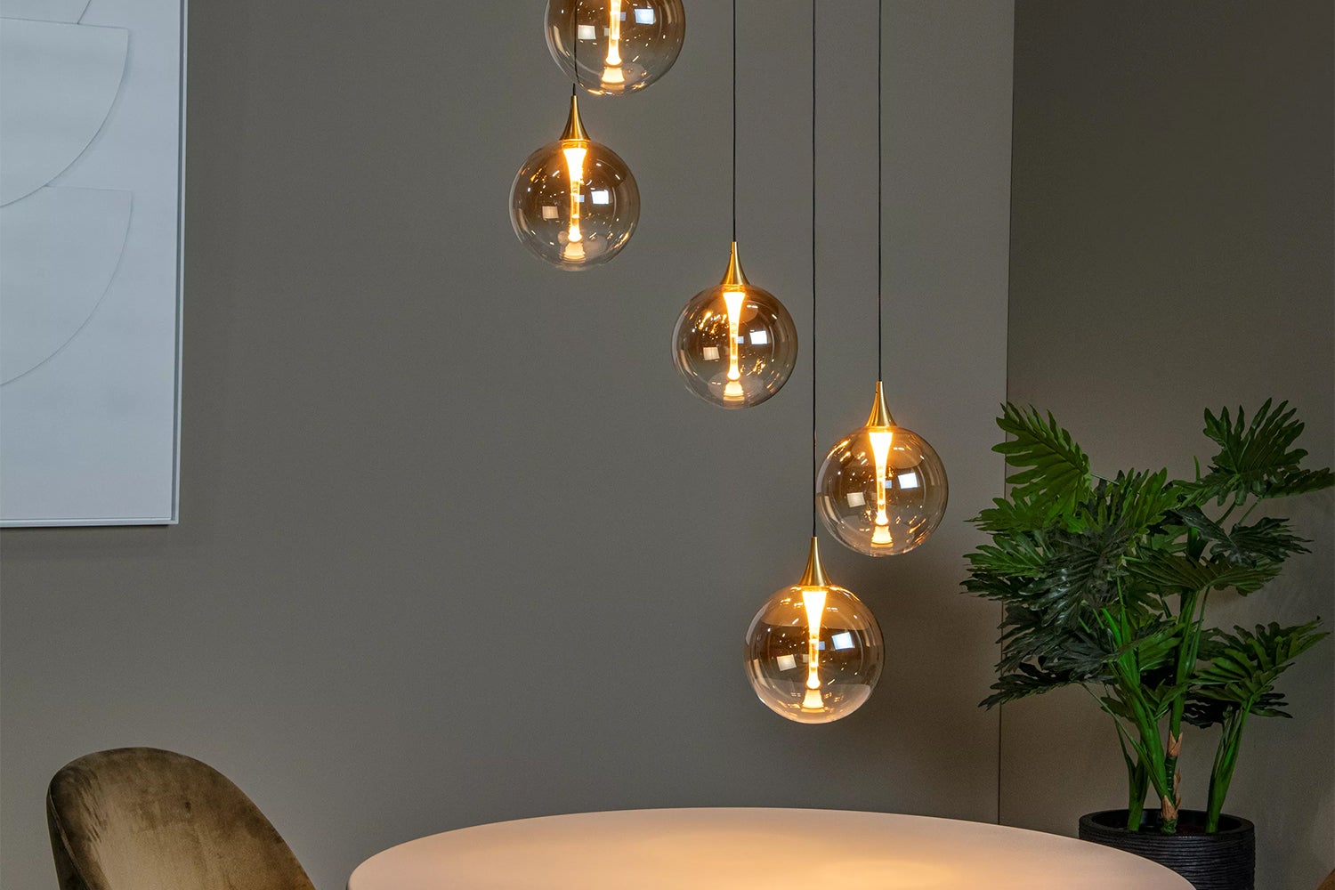 Nog meer chique: dit keer bóven de eettafel. Namelijk de Gisela hanglamp van Lucide. Alle bollen zijn afzonderlijk in hoogte te verstellen. En als dat nog niet genoeg was, zijn de geïntegreerde lichtbronnen ook nog eens dimbaar. Ideaal bij een gezellig etentje.