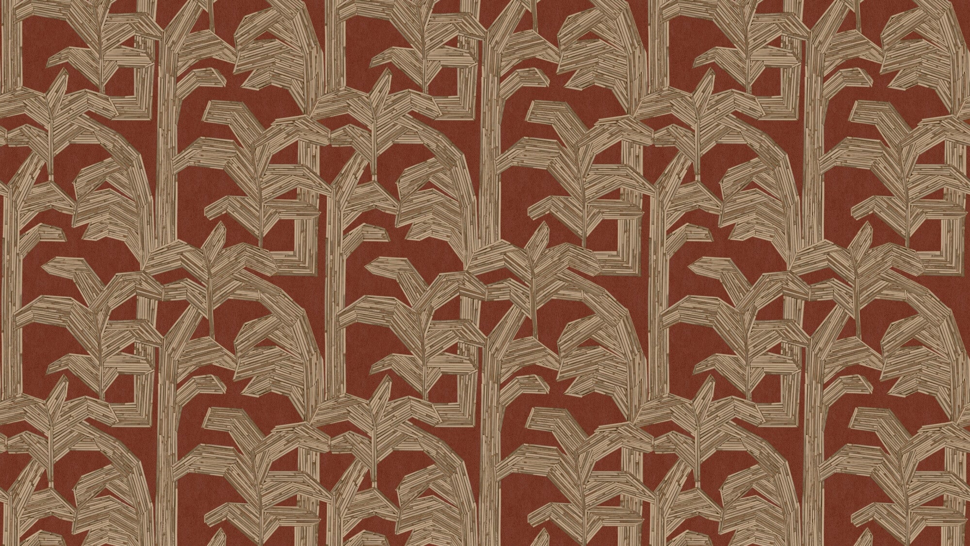 Kailua behang in de kleur Red Baron van Arte is een verfijnde keuze voor elk interieur. Dit behang is geïnspireerd op het kunstige inlegwerk met stukjes rotan, gecombineerd met textiel gemaakt van de schors van de vijgenboom. Dit ontwerp brengt een unieke mix van natuurlijke materialen en vakmanschap naar uw muren, waardoor een warme en uitnodigende sfeer ontstaat.