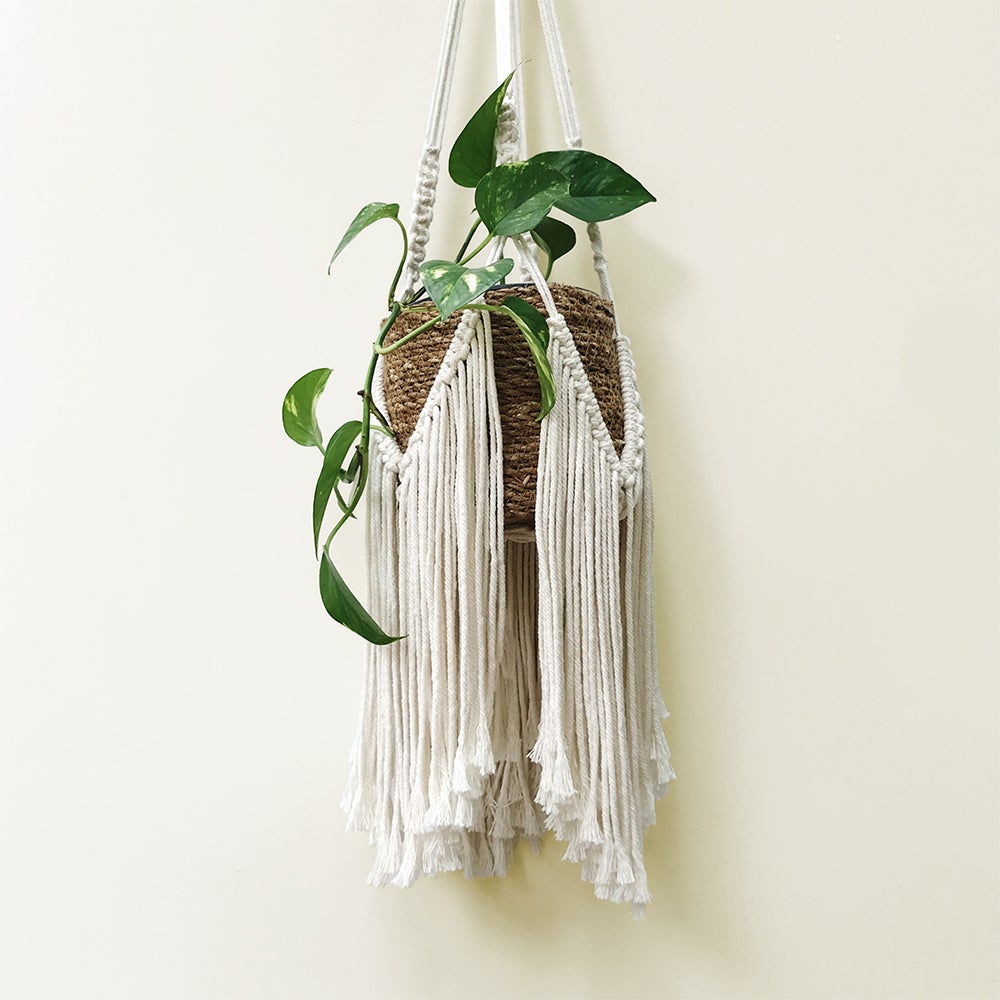 De workshop is voor beginners, maar natuurlijk hoor je van alles over de macramé technieken. Voor de workshop maak je een mooie plantenhanger. Hierdoor kun je al snel met de macramé techniek aan de slag.
