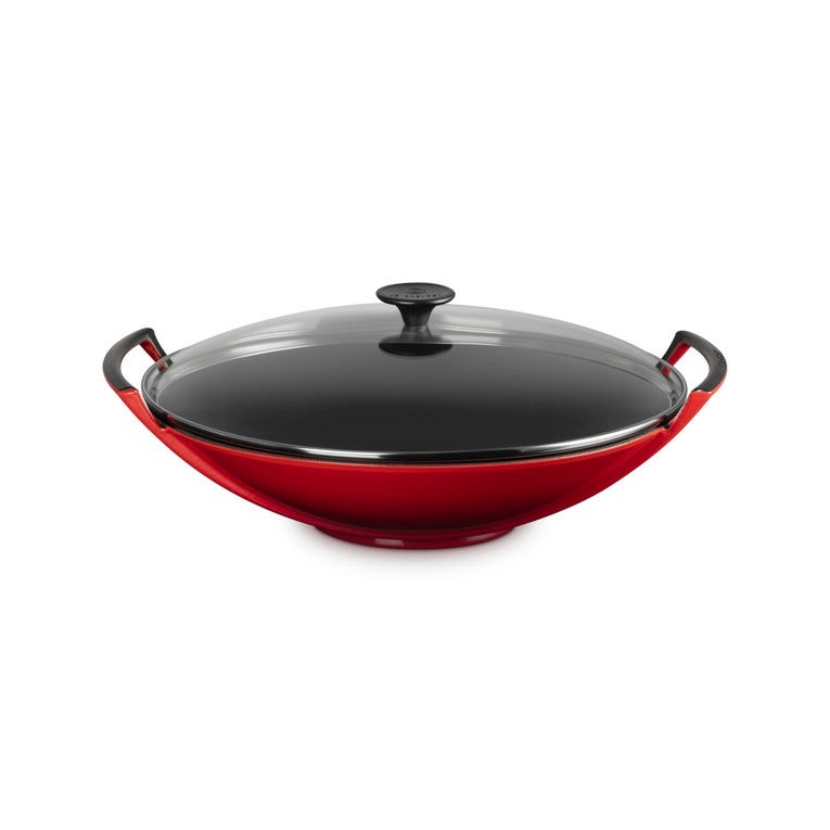 Wokpan - Geëmailleerd gietijzer met glazen deksel 36cm 4,5l - Kersenrood