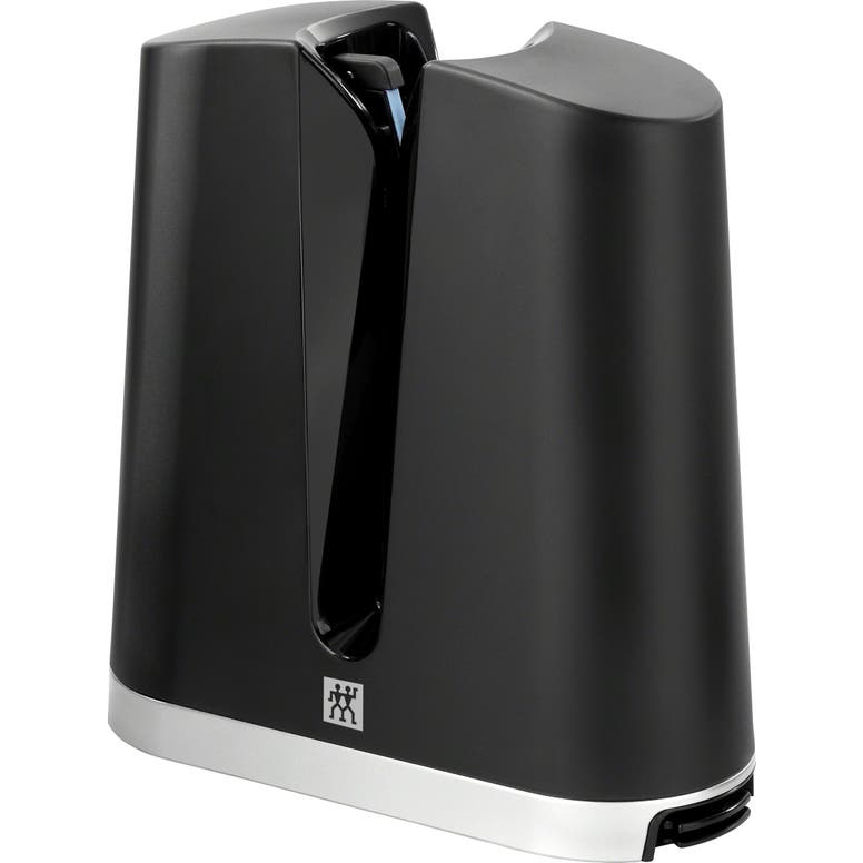 De Zwilling V-Edge messenslijper slijpt Europese en Japanse messen tot een niveau dat enkel vergelijkbaar is met een professionele slijping. De V-Edge combineert het gemak van een doortrek messenslijper met het resultaat van een slijpsteen. De keramische slijpstenen in V-opstelling scherpen het lemmet over de volledige lengte zonder het te beschadigen.